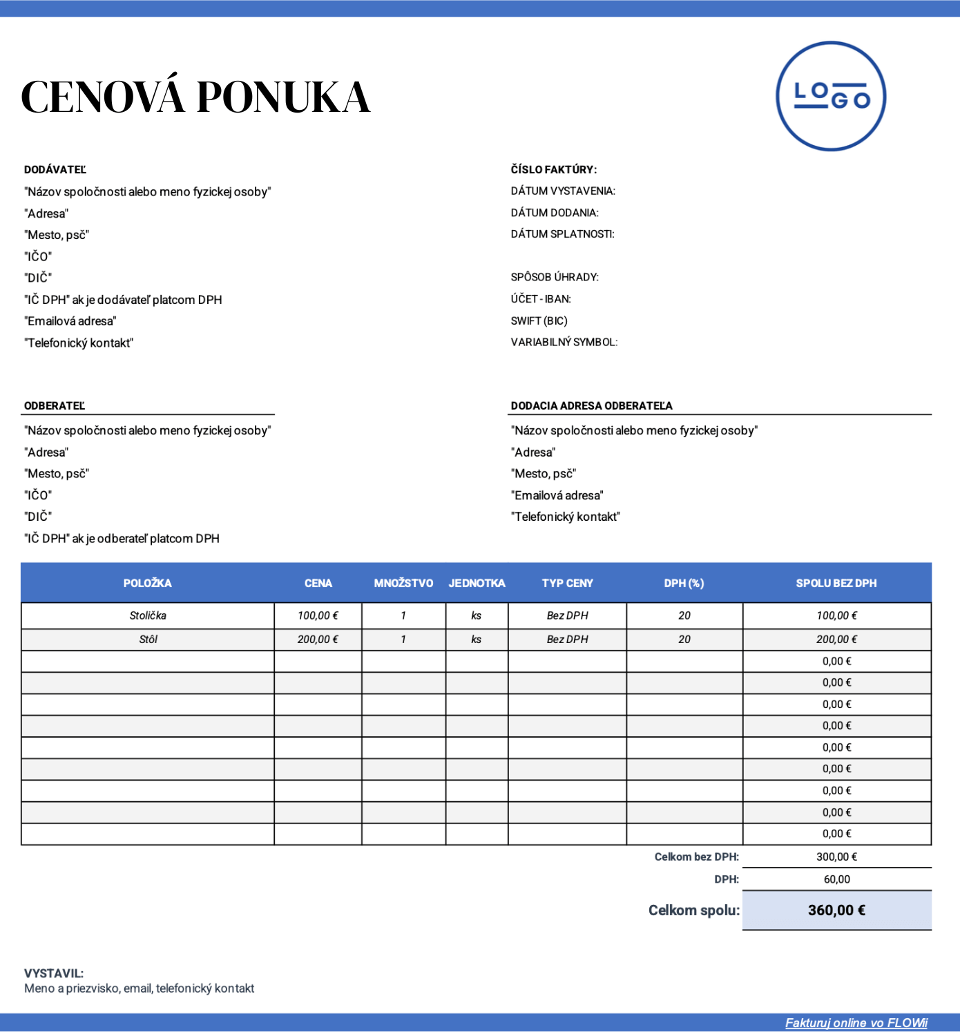 • Dátum vystavenia a platnosť ponuky (napr. platná 30 dní)