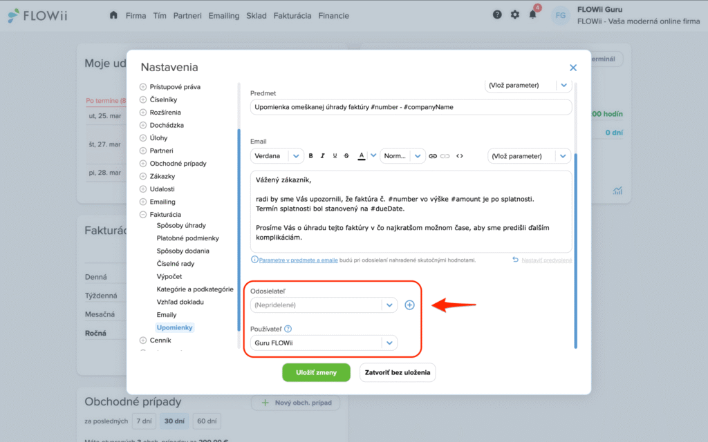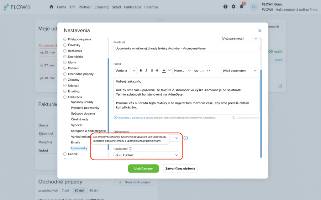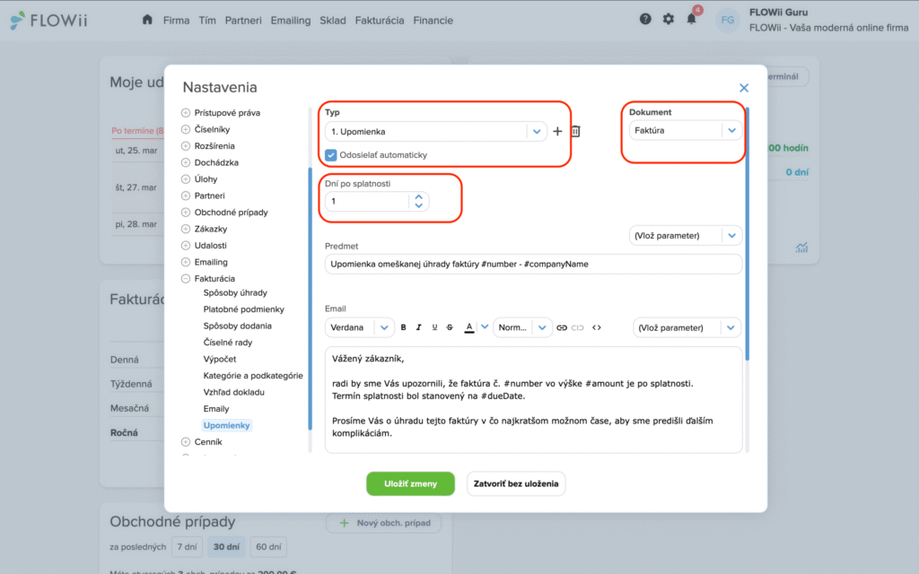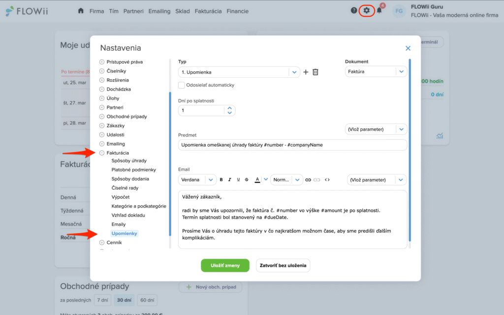 Ako nastaviť pripomienky a upomienky vo FLOWii (krok za krokom)