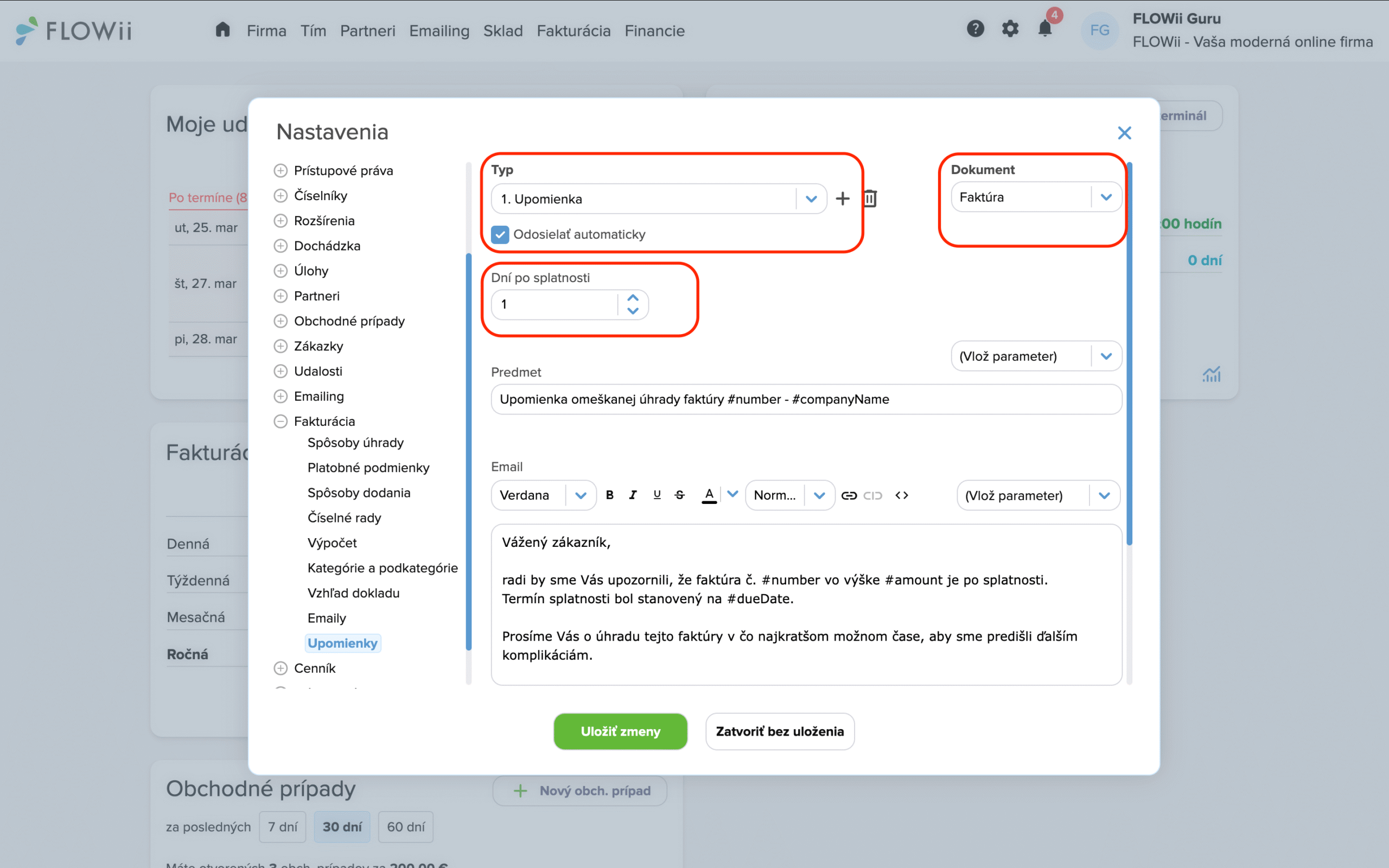 Nastavenie automatických pripomienok a upomienok k faktúram vo FLOWii